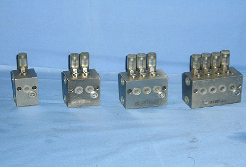 雙線式分配器是雙線式集中潤滑系統(tǒng)的核心元件,在兩條供油管交替的供油壓力作用下動作,完成潤滑劑的計(jì)量和向各個潤滑點(diǎn)分配潤滑劑的功能。