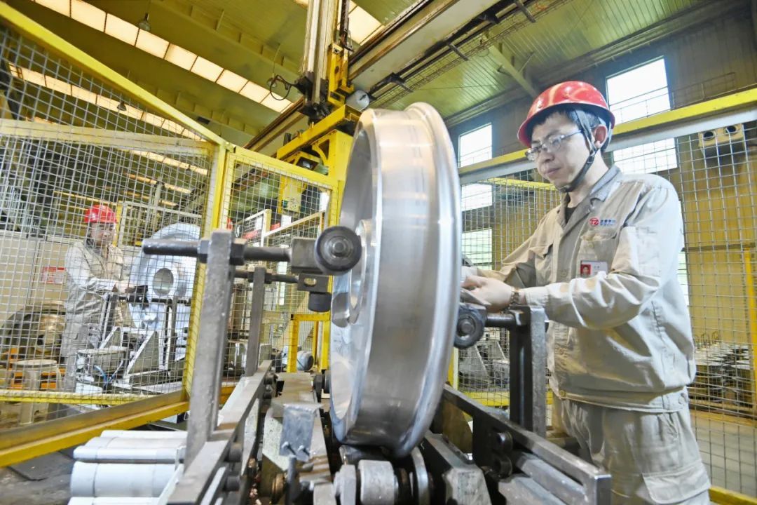 6月14日,走進(jìn)太重軌道公司車輪廠二線生產(chǎn)車間,熱浪襲來,機(jī)器轟鳴,鋸切、加熱、預(yù)成型、壓制、軋制、沖孔、成型……叮當(dāng)鋼鐵碰撞出激昂的旋律,企業(yè)為趕制用戶訂單正加足馬力。太重軌道公司是全球唯一的軌道交通用車輪、車軸、齒輪箱及輪對產(chǎn)品的全譜系全系列全流程研發(fā)制造基地,近期,該企業(yè)持續(xù)技術(shù)創(chuàng)新、對標(biāo)挖潛、降本增效,實(shí)現(xiàn)了產(chǎn)品質(zhì)量更優(yōu)、效率更高、成本更低,為全球供應(yīng)著最具競爭力的輪軸產(chǎn)品。